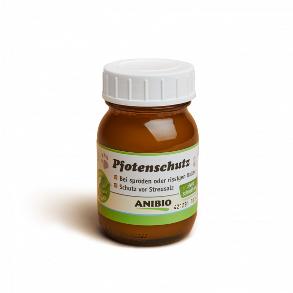 Zur Vorbeugung und Pflege von rissigen und spröden Pfotenballen empfehlen wir unsere Pfotenschutz-Creme auf rein natürlicher Basis.