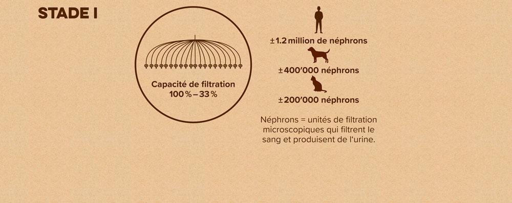 L'insuffisance rénale survient dès que la capacité de filtration est dépassée. C'est à ce stade que la maladie se manifeste cliniquement. Elle se développe progressivement sur plusieurs mois et conduit à une perte de la fonction rénale, entraînant de nombreuses complications. C'est l'une des maladies les plus fréquentes chez les chats âgés.